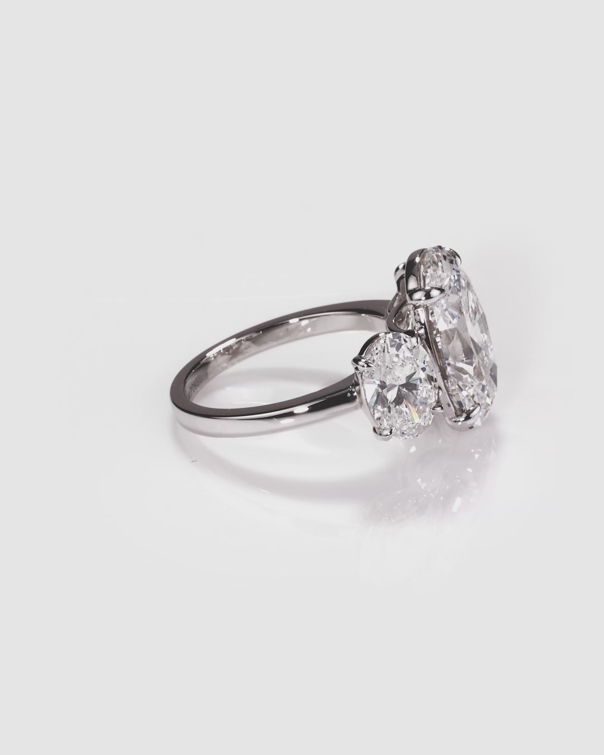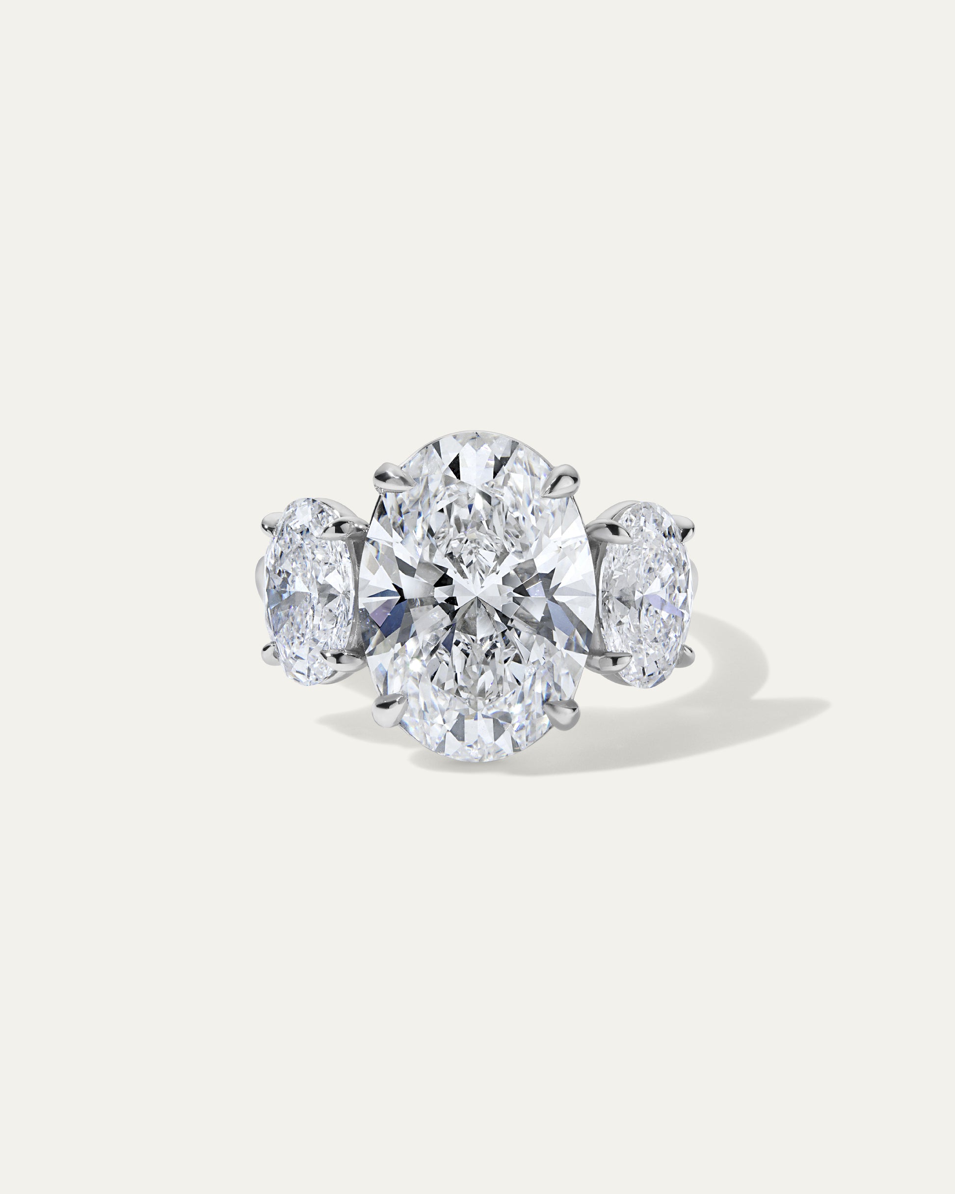 8.02CT Oval Cut Three-Stone Diamond Ring with Side Stones