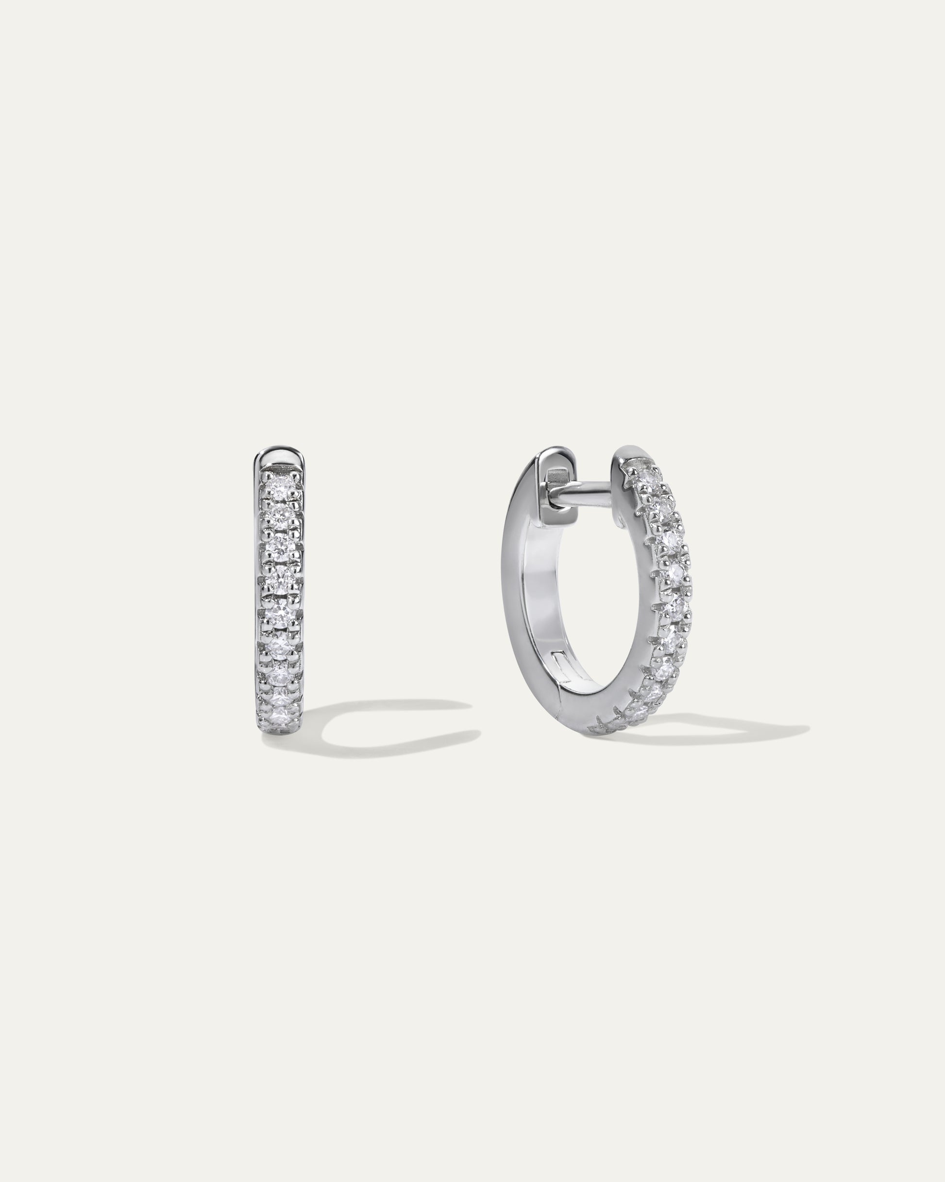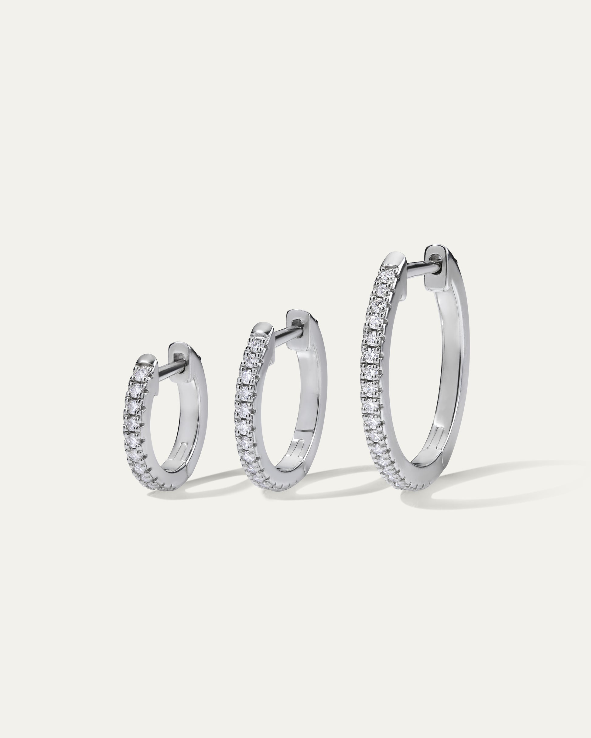 Masterfully handcrafted by our artisans with Jane's solid 925 sterling silver and rich 14-karat yellow gold vermeil, the hoops feature radiant Jane Everyday Diamonds™, our signature pavé-set white moissanite stones with exceptional clarity and color (which are virtually indistinguishable from natural diamonds). Lightweight, smooth, and secure, the earrings are made for all-day (and all-night) wear—no pinching, no irritation, just effortless comfort.