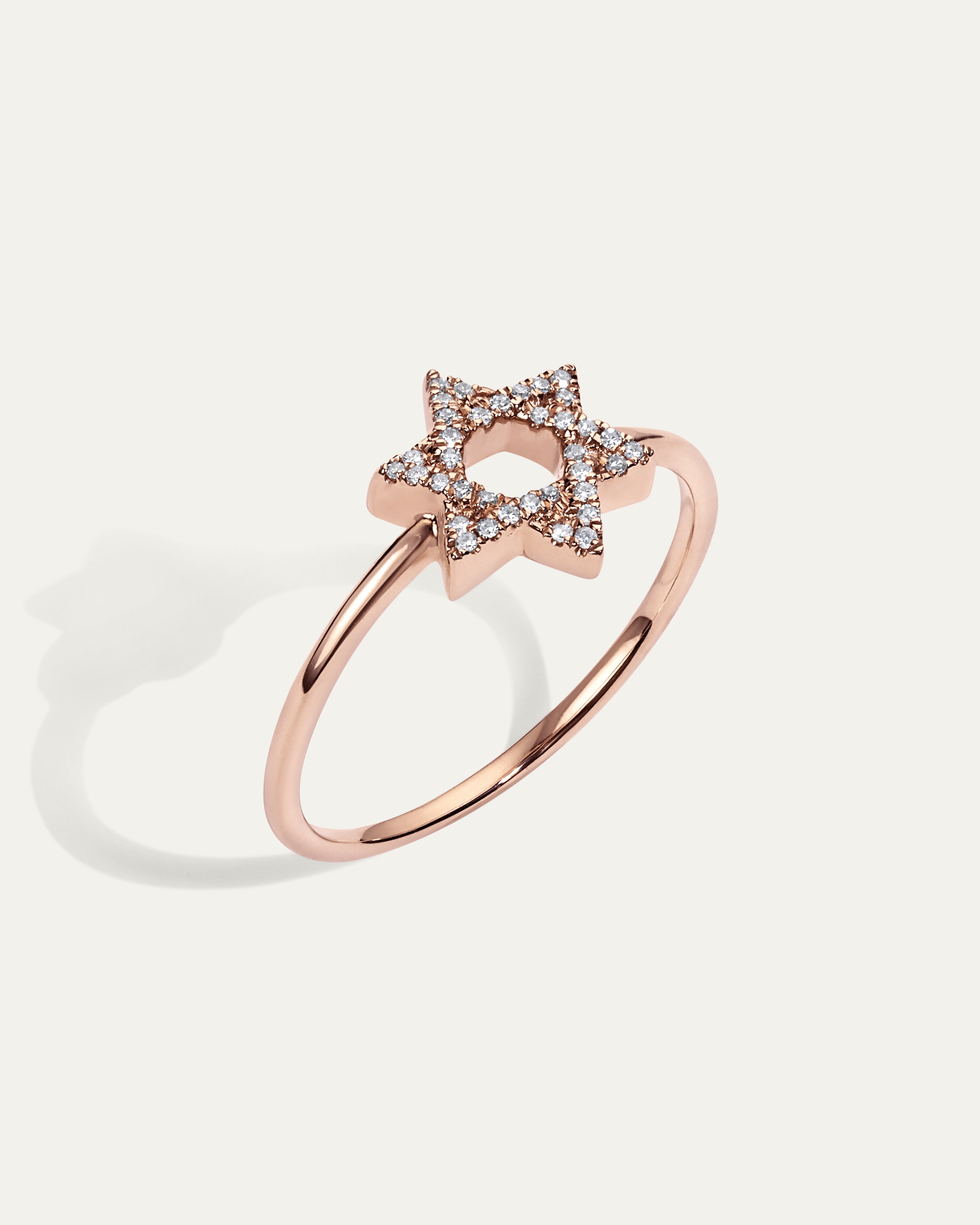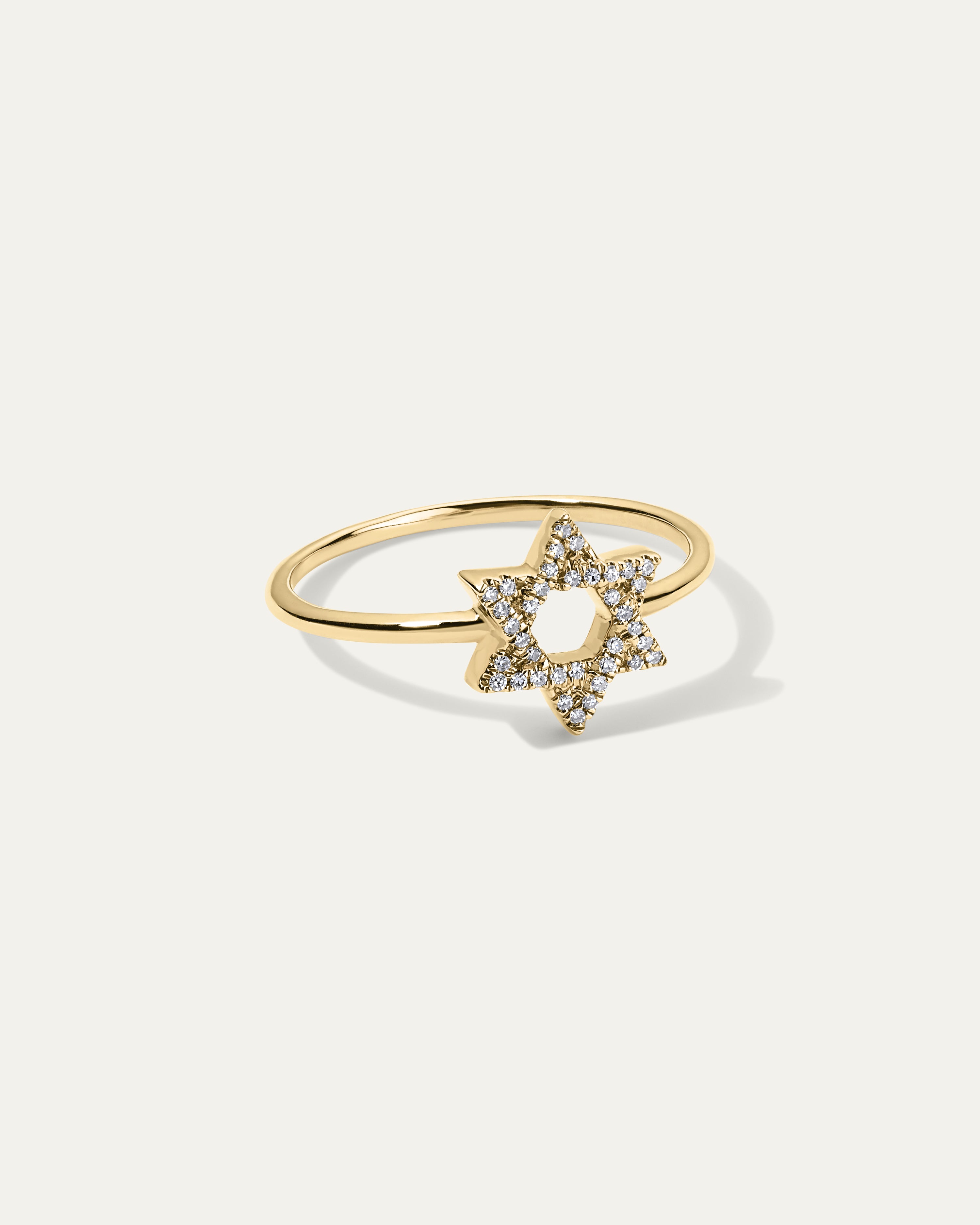 An enchanting fusion of symbolic heritage and exceptional craftsmanship, The Star of David Pavé Diamond Ring is a resplendent creation that exudes an aura of faithful brilliance. Each diamond, meticulously selected for its peerless clarity and scintillation, is delicately enshrined within the geometric form, creating a transcendent emblem of identity, grace, and timeless luxury.