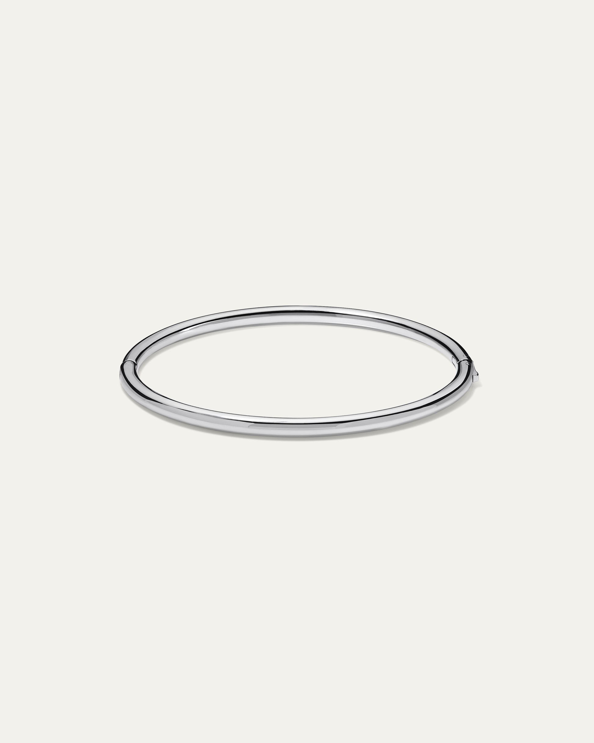 Masterfully handcrafted by our artisans with Jane's solid stainless steel in a high-polish finish, this sleek, water-durable and scratch-resistant bangle is designed to keep up with your lifestyle while maintaining its radiant shine. The flattened interior ensures all-day comfort and the hinge and tab lock closure allows for secure, easy wear.