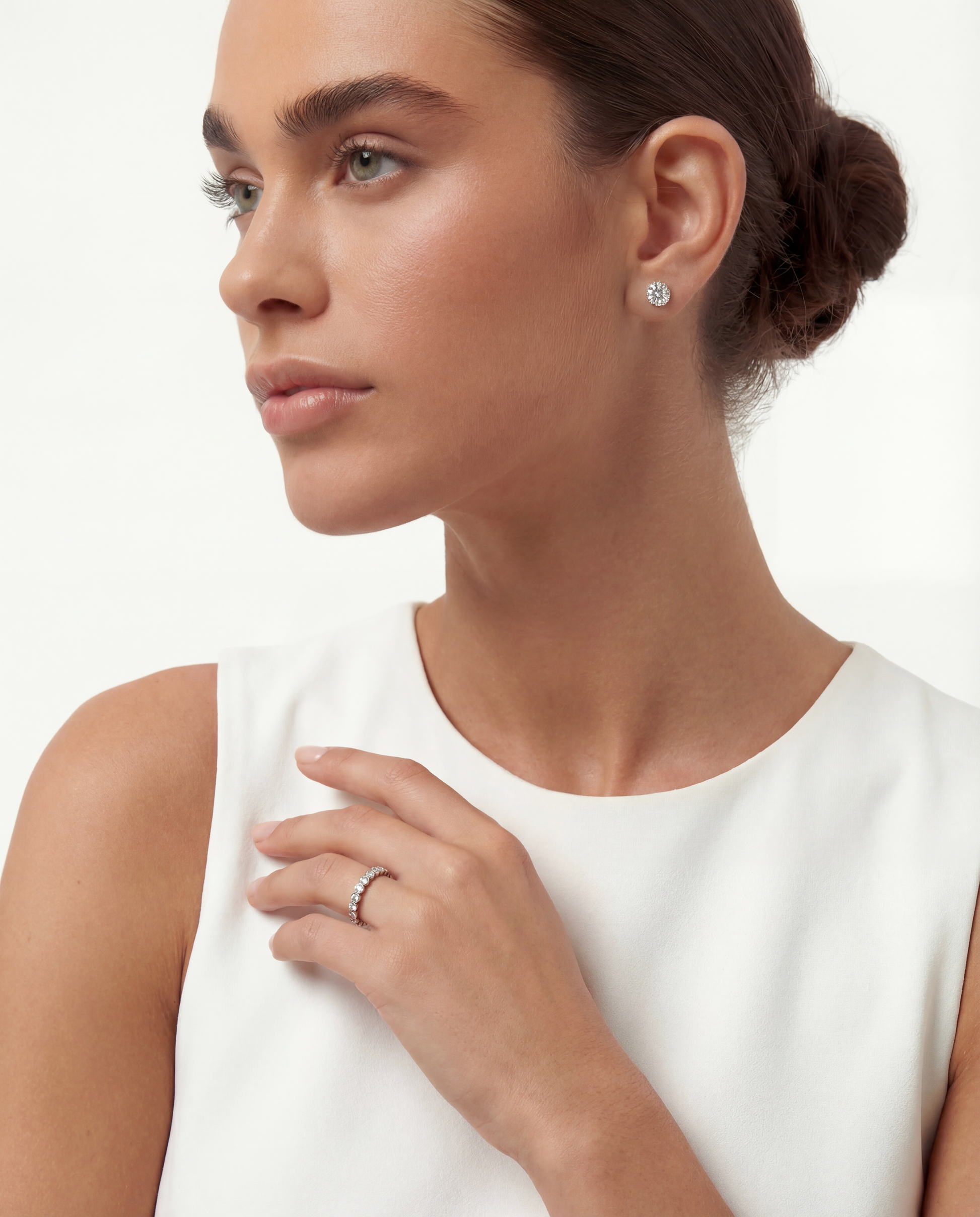 The Charlotte Bezel Eternity Band gives the timeless eternity design a modern edge. Each stone is securely wrapped in a sleek bezel setting, creating a band that’s as comfortable as it is beautiful.