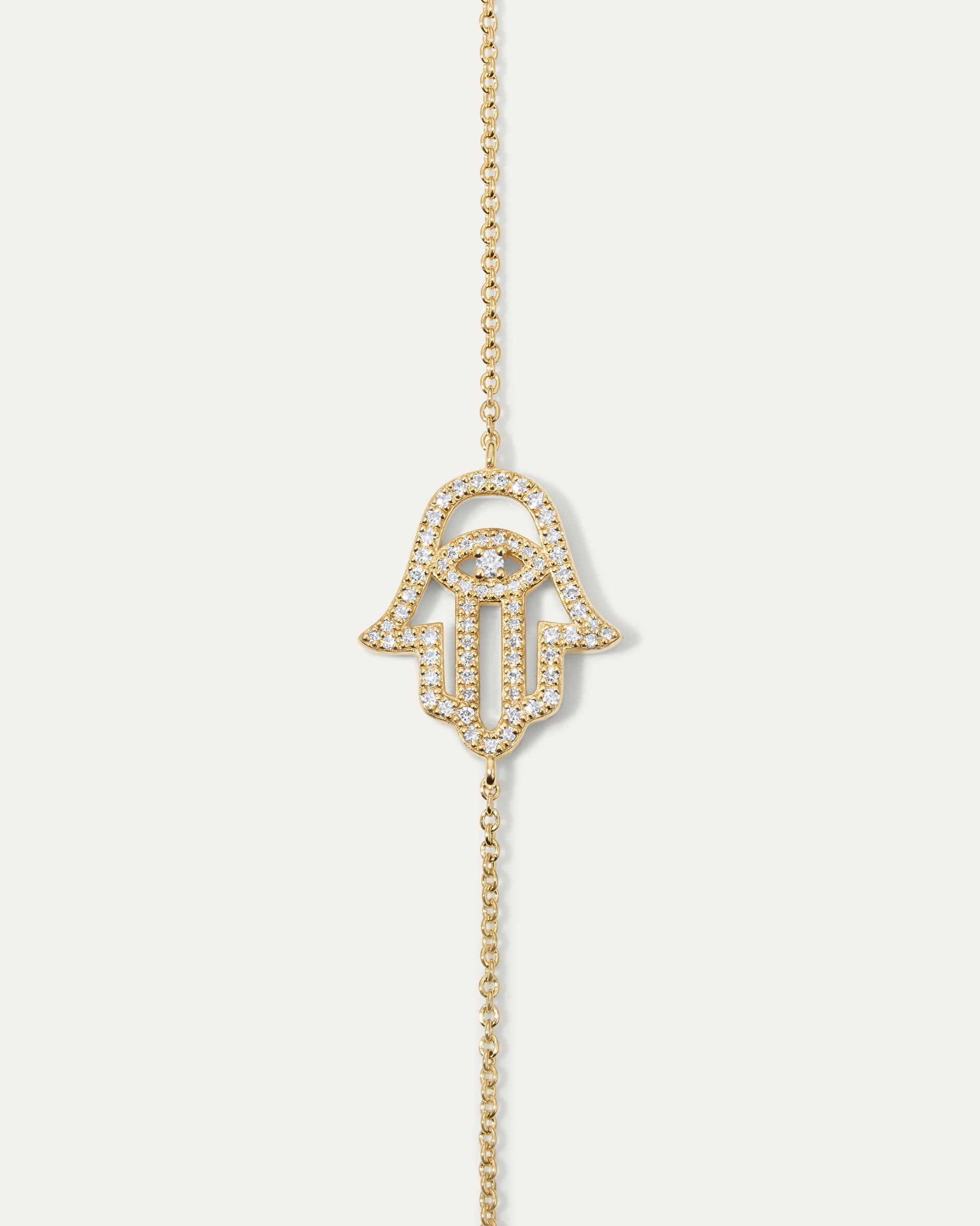 Embrace protection and style with The Hamsa Hand Chain, a delicate statement piece that blends spiritual symbolism wi...