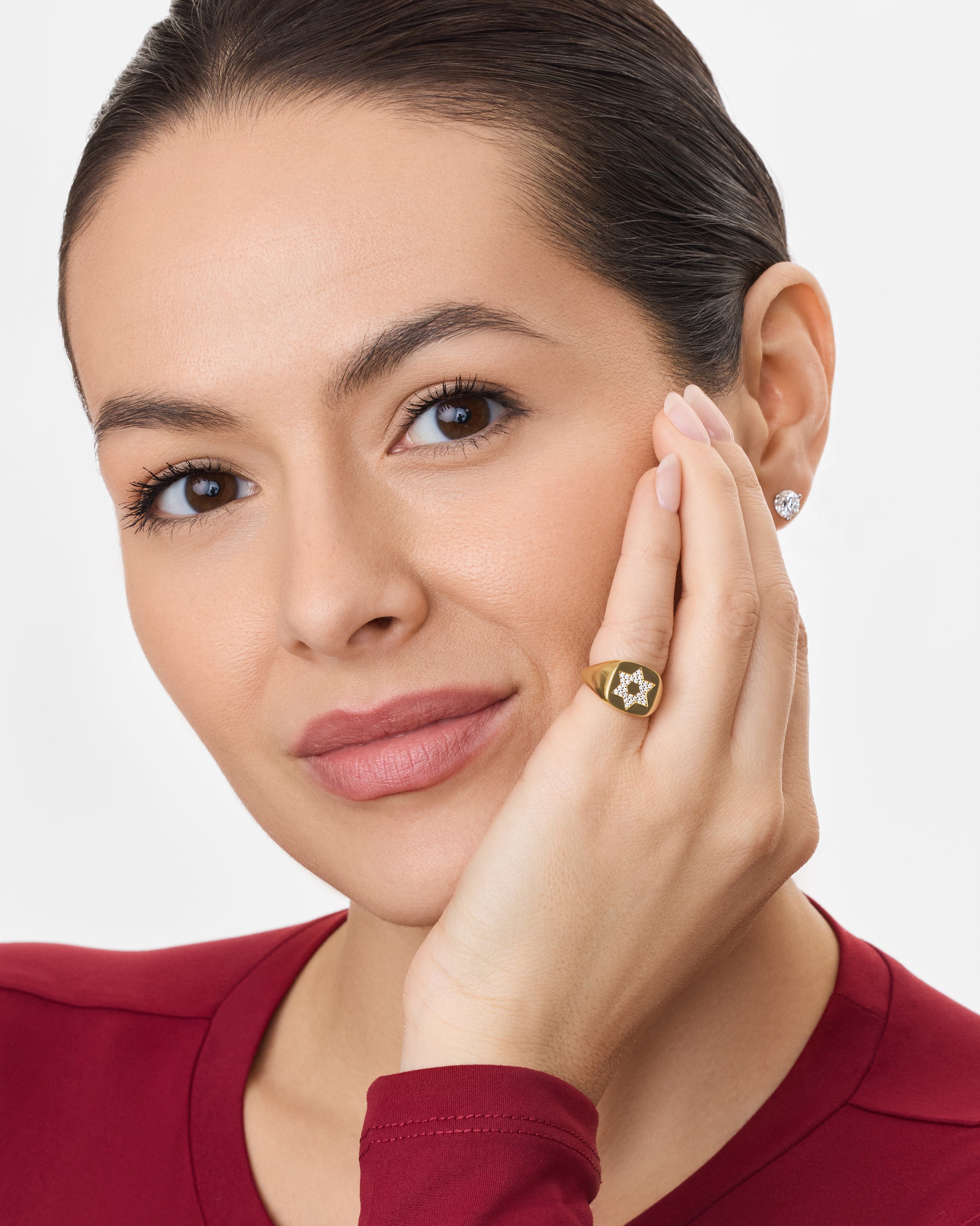 The perfect accessory for luxurious symbolism, The Star of David Signet Ring is a modern statement of identity and strength. It's silhouette evokes the legacy of the classic signet design.